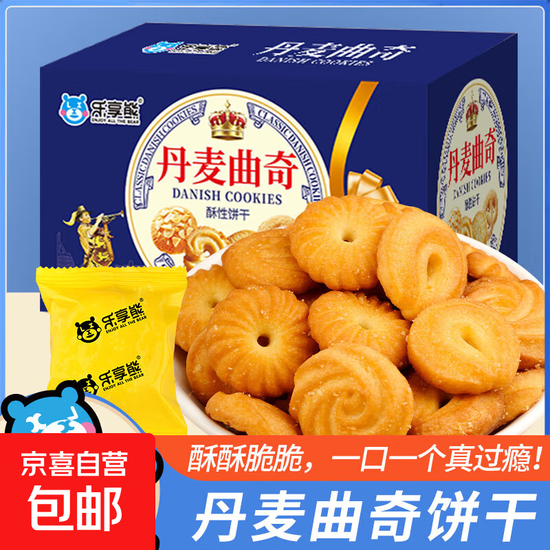 乐享熊丹麦风味曲奇饼干整箱净含量早餐酥脆非油炸独立包装零食 丹麦风味曲奇饼干500g*1盒