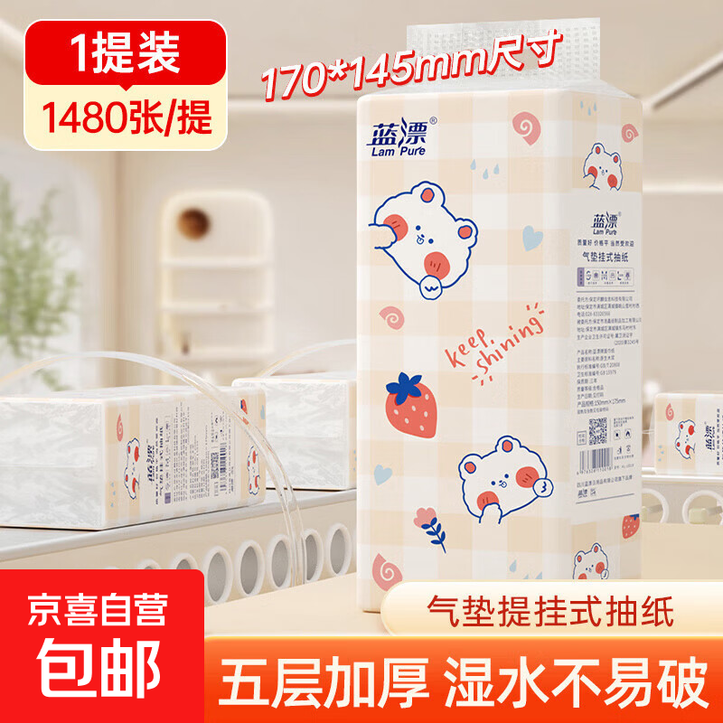 蓝漂萌宠系列1480张5层加厚提挂式白色抽纸悬挂式纸巾 4层 1480张*1提