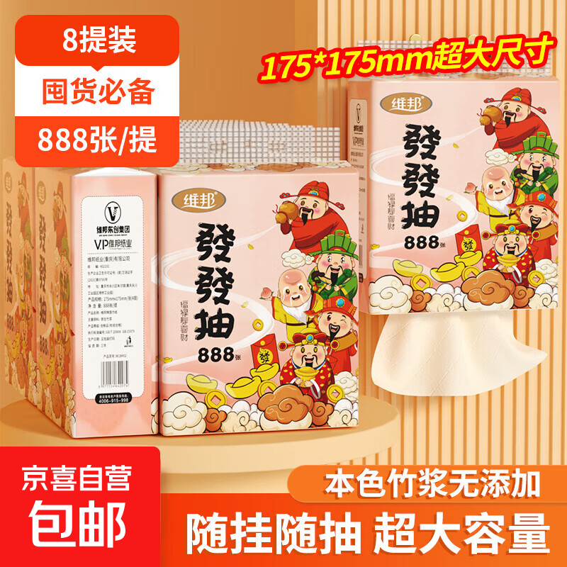 胖东来同款新中式超大发发抽悬挂抽纸餐巾纸擦手纸888张4层加厚 1提装