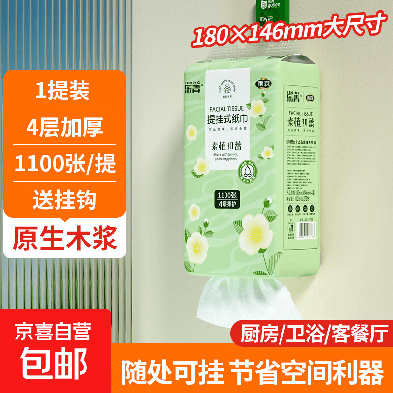 雨森(YUSEN)乐青提挂悬挂抽纸面巾纸1100张/包4层厚大包擦手纸 4层 1100张*1提