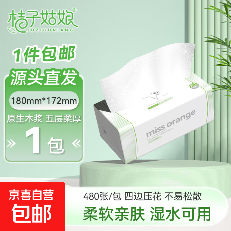 桔子姑娘大包抽纸480张加厚餐巾纸家用面巾纸母婴用纸整箱实惠装 5层 480张*1包 【L码试用装】
