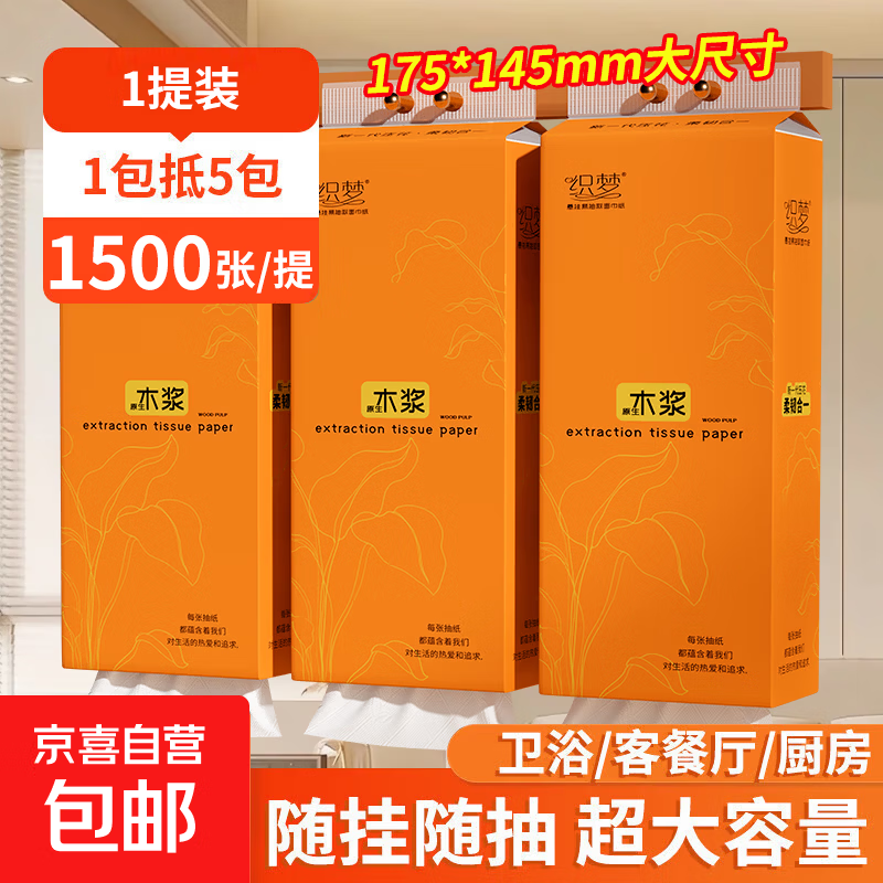 织梦悬挂式抽纸1500张加大家用卫生纸巾四层加厚 1提【热卖装】