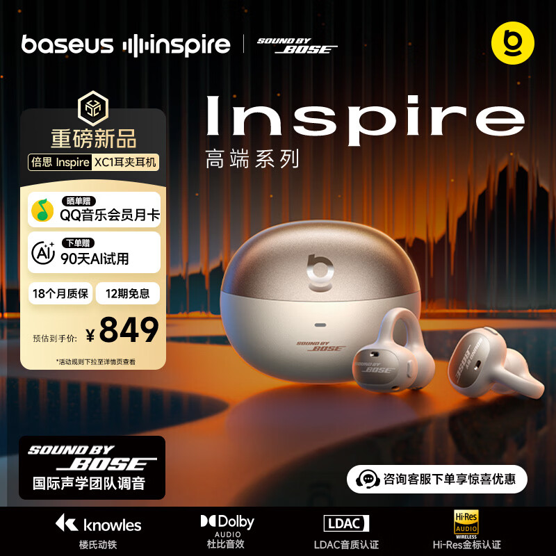 倍思Inspire XC1 耳夹耳机Sound by Bose专业音质开放式无线蓝牙耳机消噪耳机跑步运动适用于苹果17