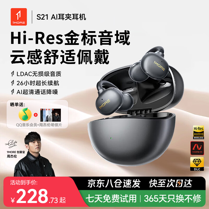 万魔(1MORE)S21耳夹式蓝牙耳机开放式不入耳气传导概念AI通话降噪运动适用华为小米苹果周杰伦代言 磨砂黑