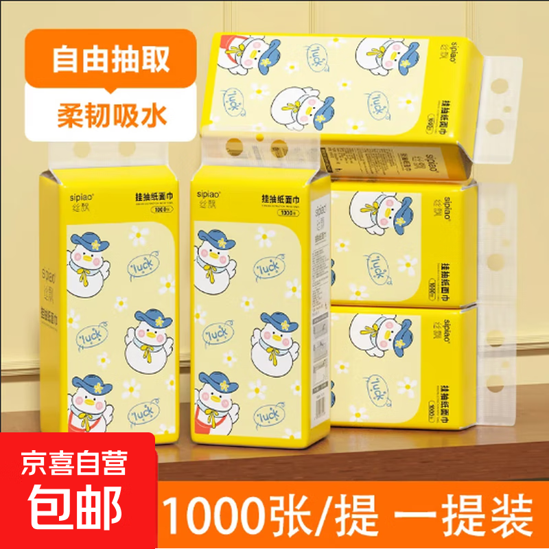 幸运小黄鸭 悬挂式抽纸本色餐巾纸巾卫生纸4层加厚1000张纸抽 1提惠享装