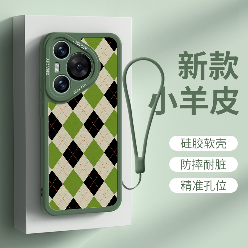 华为pura70手机壳黑白绿格子 适用新款p70pro商务简约菱格皮纹外壳定制硅胶男士女款pura 70 ultra全包保护套