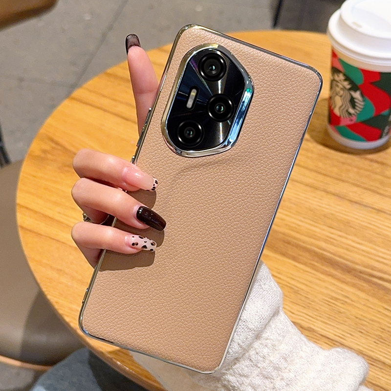 肤感荔枝纹粉咖适用荣耀300Pro手机壳皮纹电镀荣耀300保护套全包防摔荣耀300ultra皮质深咖简约高档男女ins风