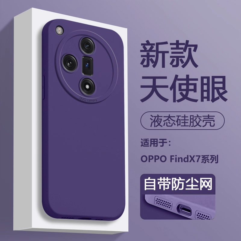 BOORCA适用于OPPO FindX7手机壳新款暗紫色opfindx7ultra液态硅胶保护套直边天使眼软壳简约纯色磨砂情侣