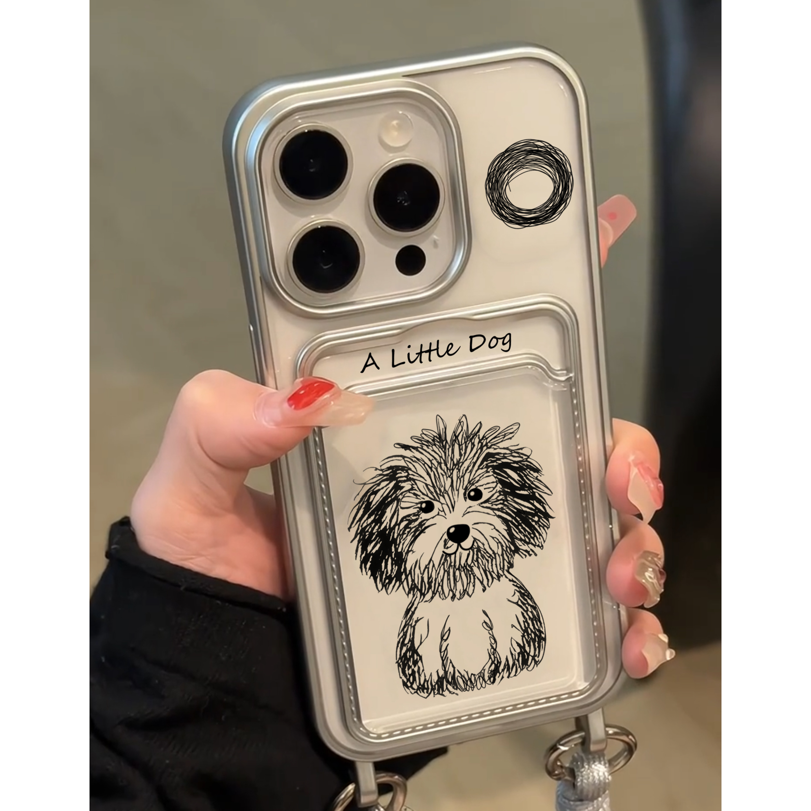 ins乱糟糟线条小狗卡包适用苹果15promax手机壳iphone14pro新款13pro软壳12华为Pura70Ultra女11带挂绳13可爱