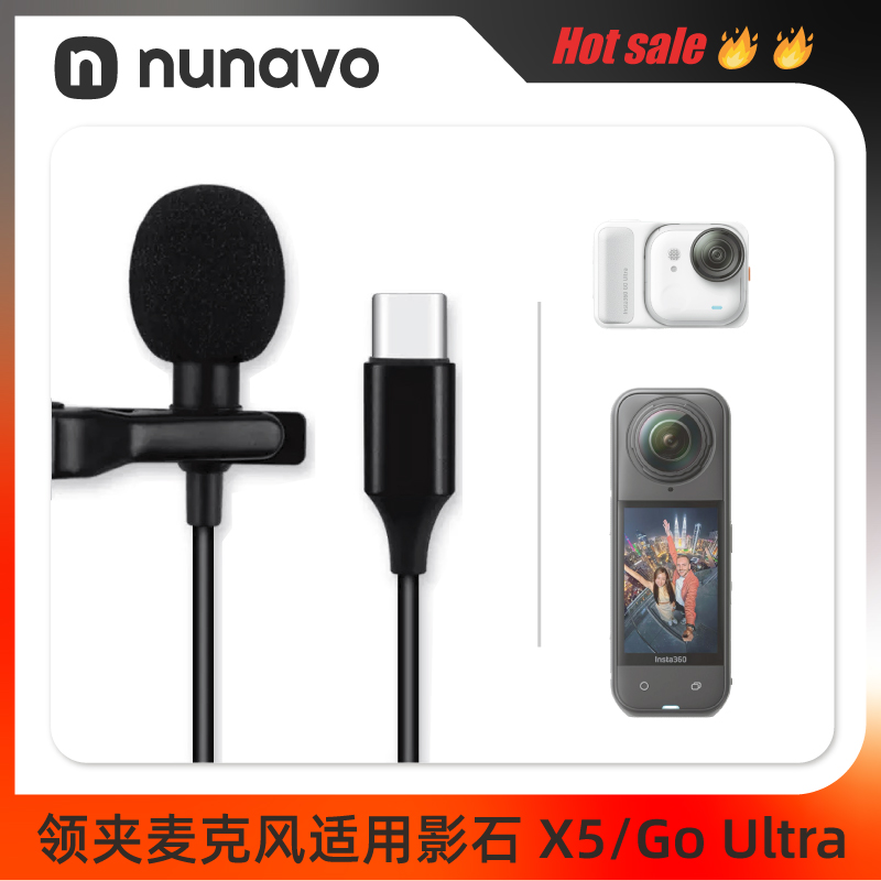 有线麦适用Insta360 X5/GO ULTRA有线麦克风全景运动相机录音麦