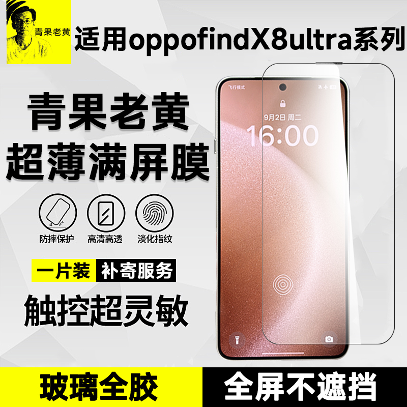 青果老黄适用于OPPOfindx8ultra防摔超薄全胶x8s超声波解锁x8新款高清全屏覆盖x8s+防爆不挡屏n5钢化膜防指纹