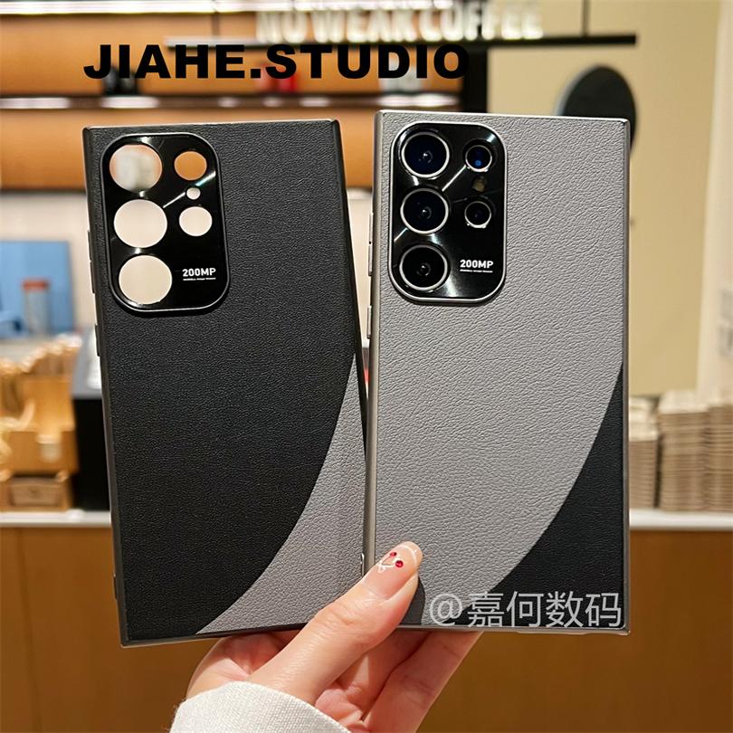 素皮双色拼色适用三星s24ultra手机壳s23ultra硬壳高颜值贴皮s22ultra全包s24+简约s23+保护壳s22+金属镜头框