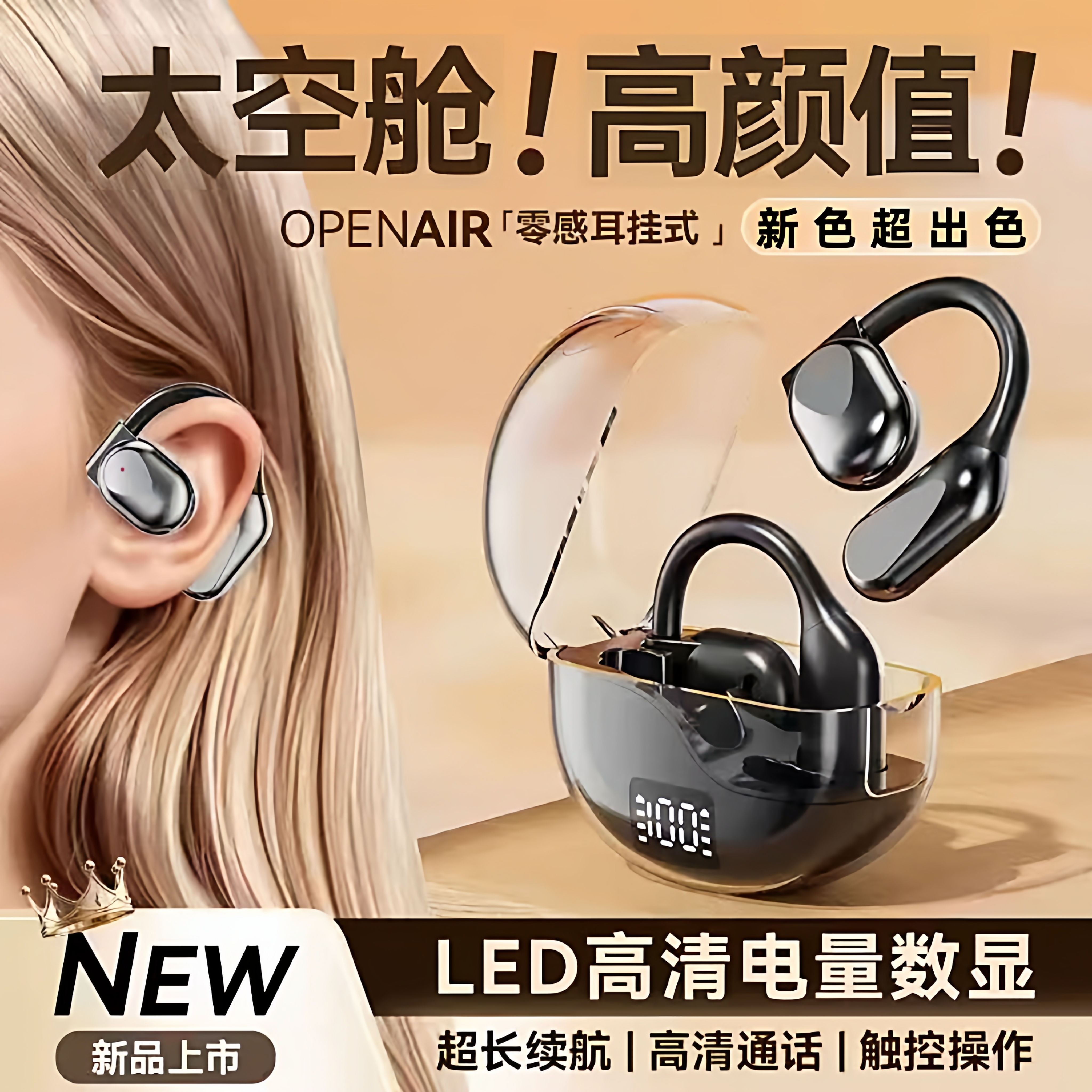 日本品质新款V12无线蓝牙耳机Ultra耳夹式长续航高音质降噪耳机适