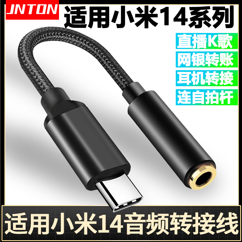 井拓 适用小米14 14pro 14ultra手机耳机转接线typec转3.5高清音频转换器连直播声卡效果器麦克风网银自拍杆