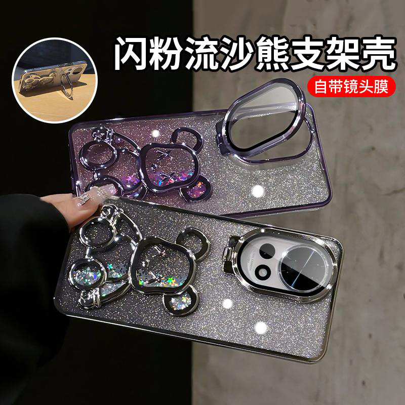 闪粉流沙小熊适用华为nova12pro手机壳新款电镀透明nova12隐形护镜支架外壳ultra全包防摔高级感创意保护套女