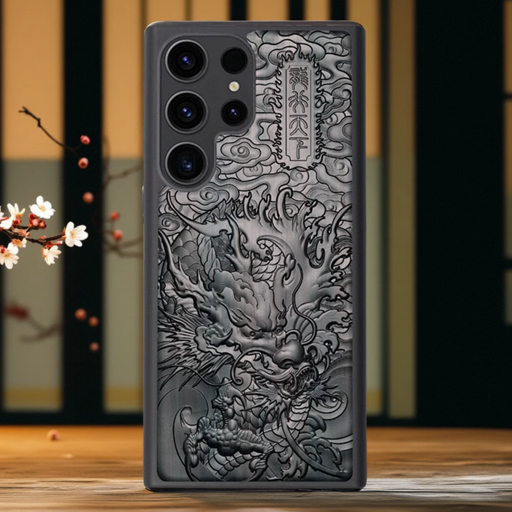 龙腾四海三星S24 ultra紫光檀木手机壳三星S23防摔保护套Galaxy S22+复古中国风S25貔貅浮雕个性男女新款适用