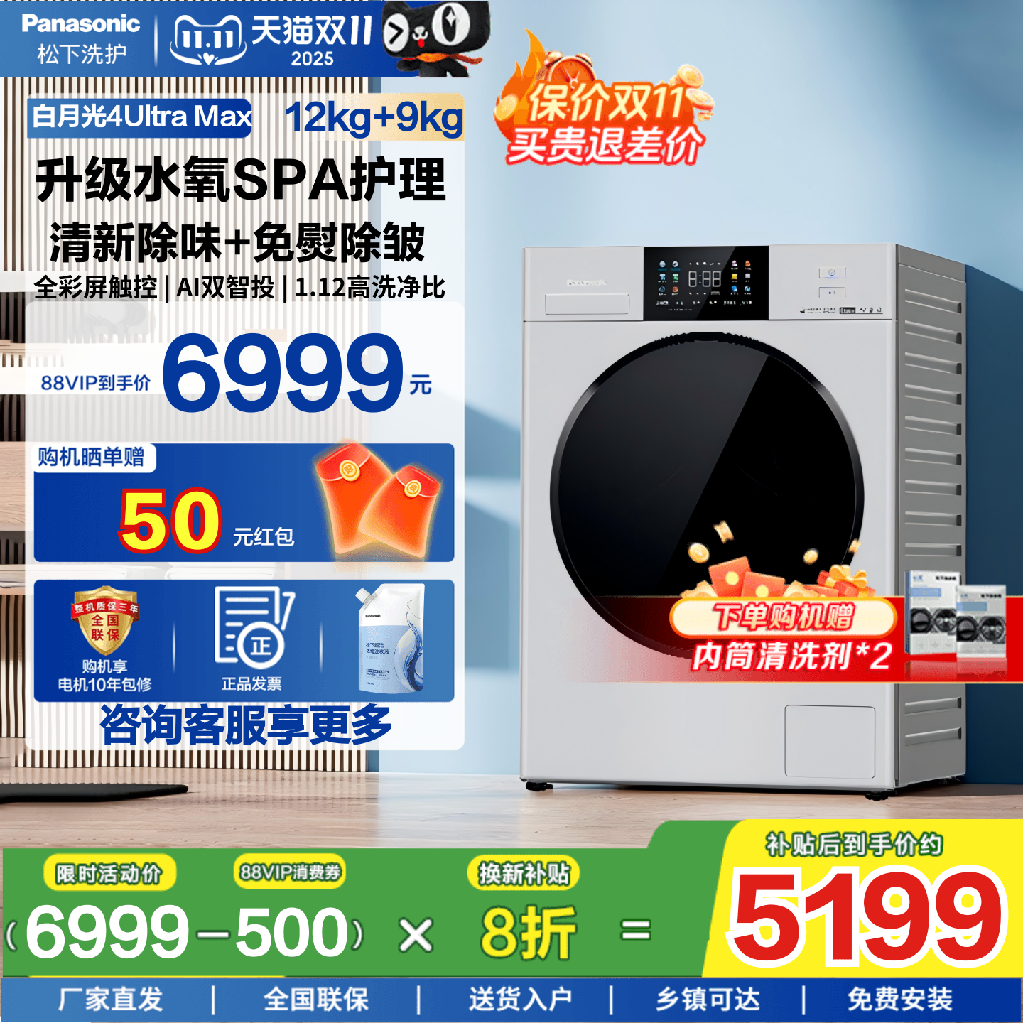 松下白月光4.0Ultra Max滚筒洗烘一体洗衣机12kg变频全自动彩屏