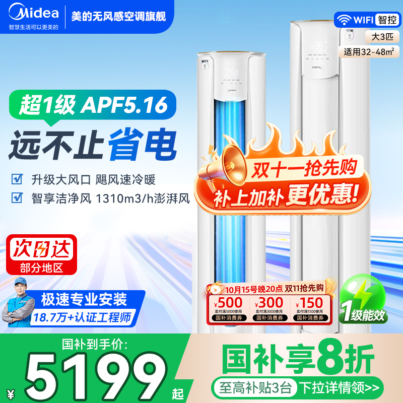 美的空调立式一级变频3匹2匹智能客厅家用冷暖柜机酷省电Ultra