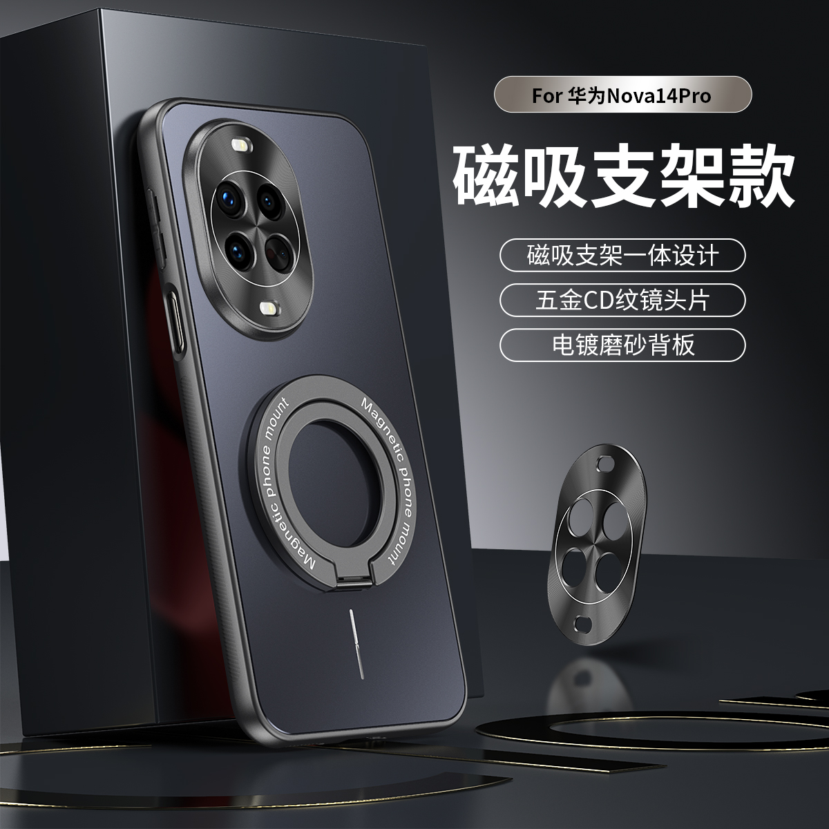 细圈磁吸支架适用于华为nova14Pro手机壳金属镜头圈Nova14Ultra保护套全包防摔13pro磨砂外壳12ultra简约11po