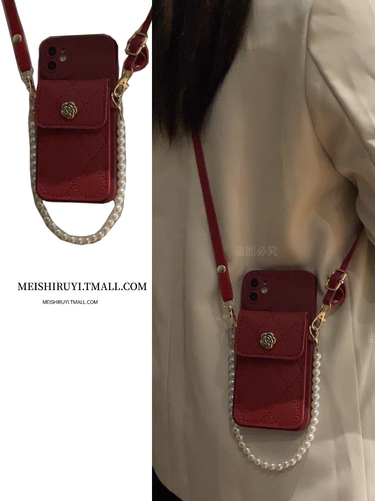 酒红玫瑰花零钱包适用华为nova12ultra手机壳荣耀300/200/100X50i+畅享70pro女nova13/11/10/9斜挎挂绳magic7
