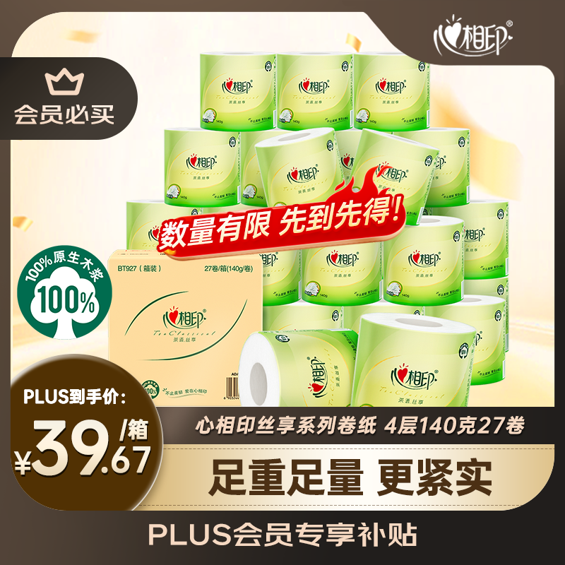 心相印有芯卷纸 卫生纸巾 茶语丝享 4层140g*27卷 整箱(包装新老交替)