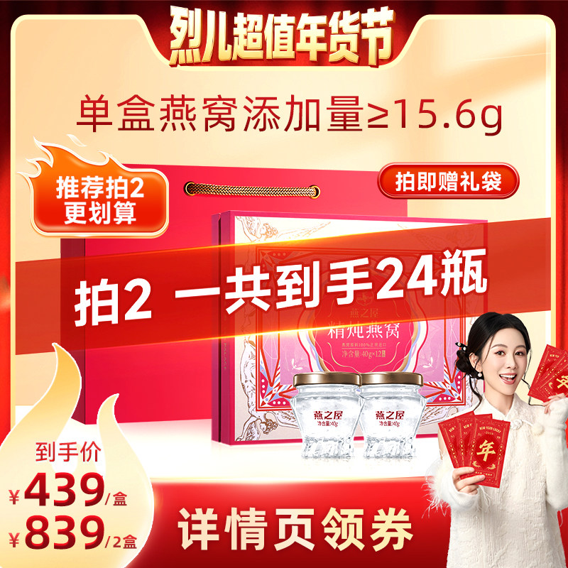 【烈儿宝贝超值年货节】燕之屋鲜炖即食燕窝40g*12瓶礼盒装
