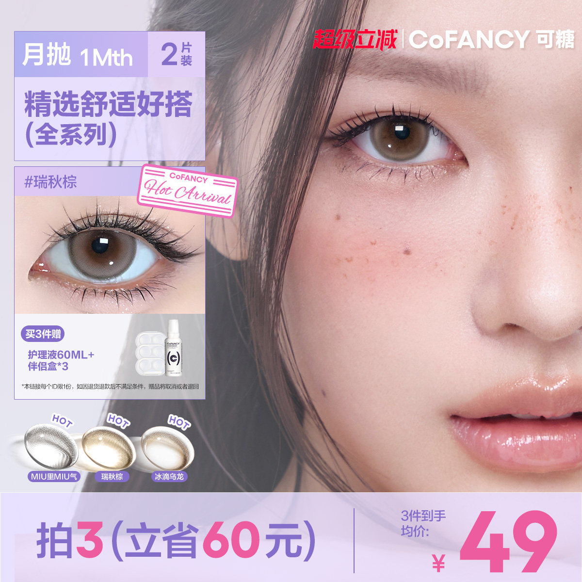 COFANCY可糖美瞳联名月抛小大直径隐形眼镜棕色高光芭比三明治2片
