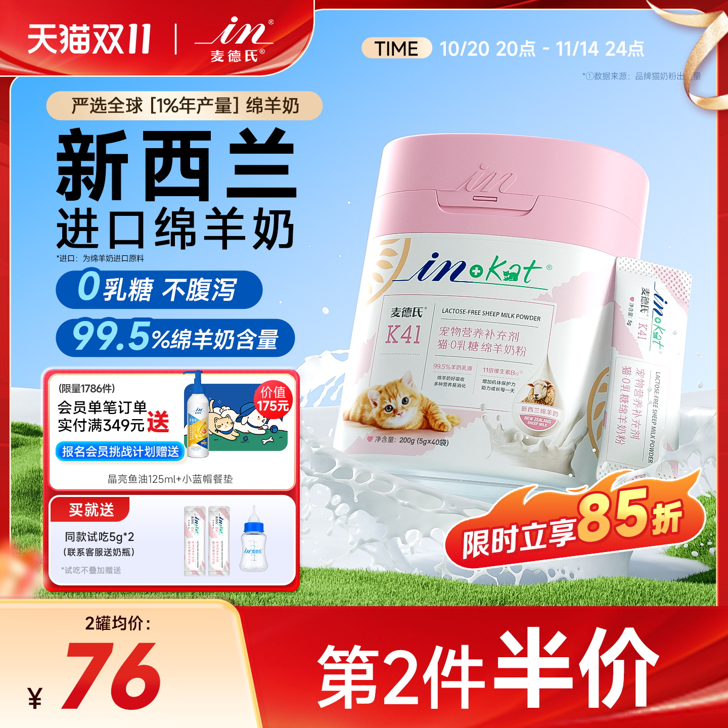 麦德氏绵羊奶粉幼成猫猫咪0乳糖乳铁蛋白新生小奶猫专用奶粉猫用