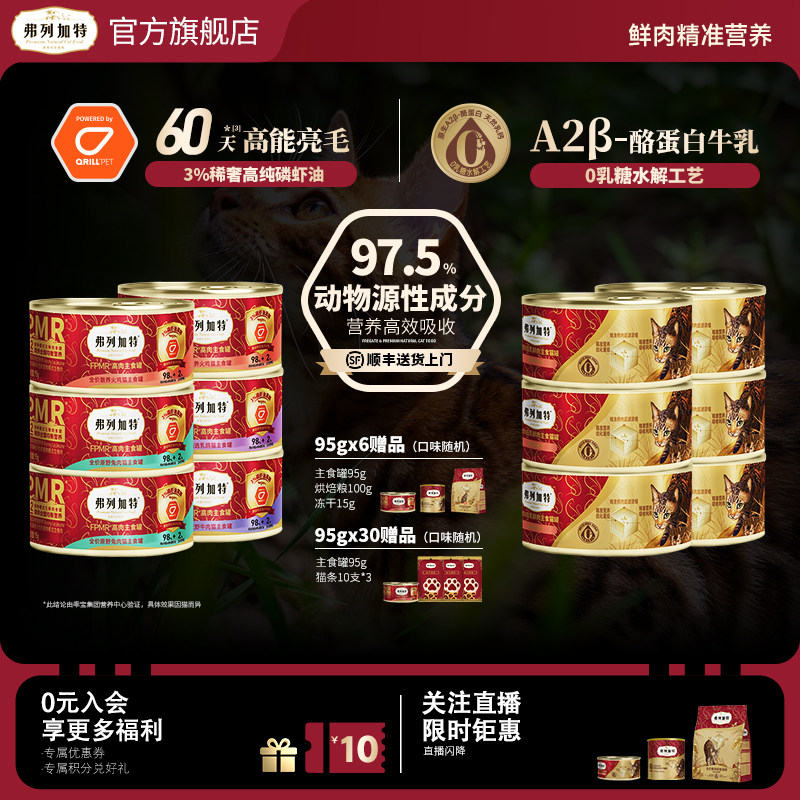 弗列加特0乳糖生骨肉猫主食罐头幼猫成猫罐头猫咪湿粮猫粮囤货装