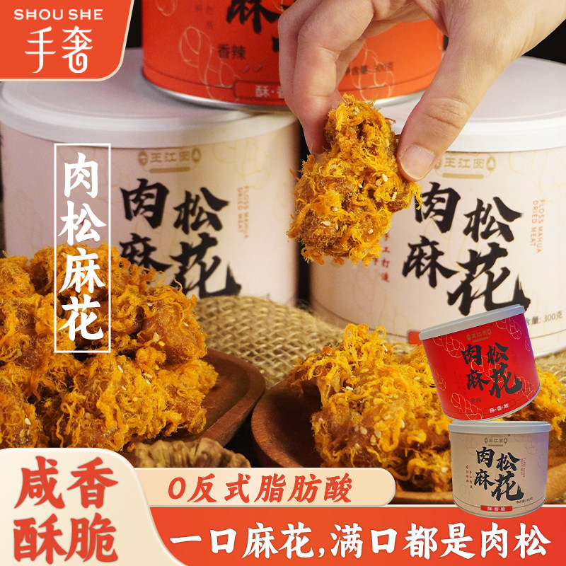 王江囡手奢肉松麻花300g海苔香辣味网红传统小吃休闲追剧解馋零食