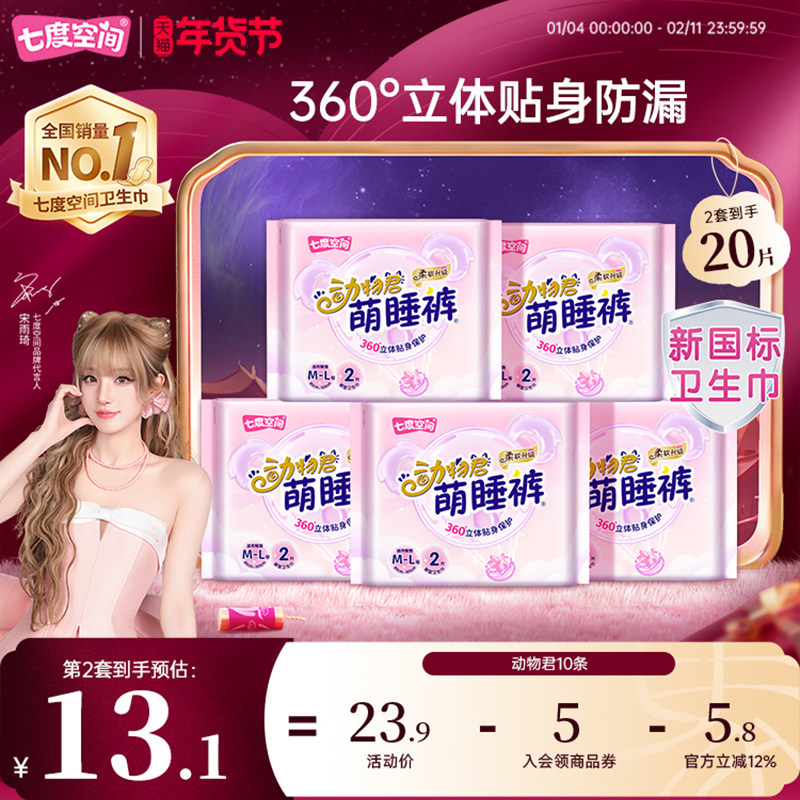 【新国标认证】七度空间安睡裤动物君裤型卫生巾安心裤10条