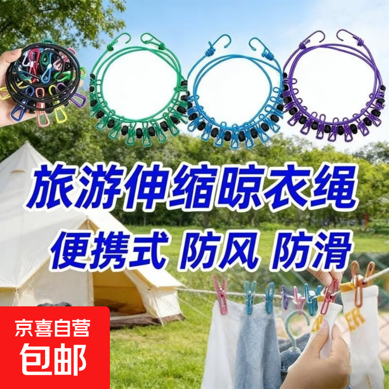 便携旅游晾衣绳带夹子晒衣绳户外晒被绳 户外晾衣绳 【晾衣绳】 【彩色1套】