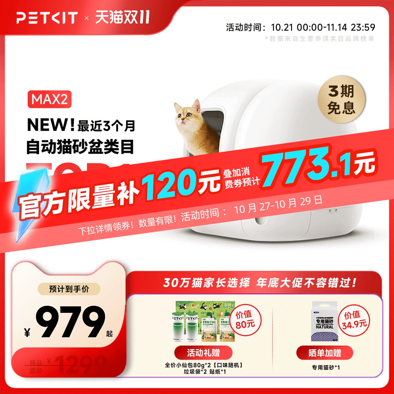 小佩全自动猫砂盆MAX2电动智能猫厕所猫咪用品封闭防臭防外溅铲砂