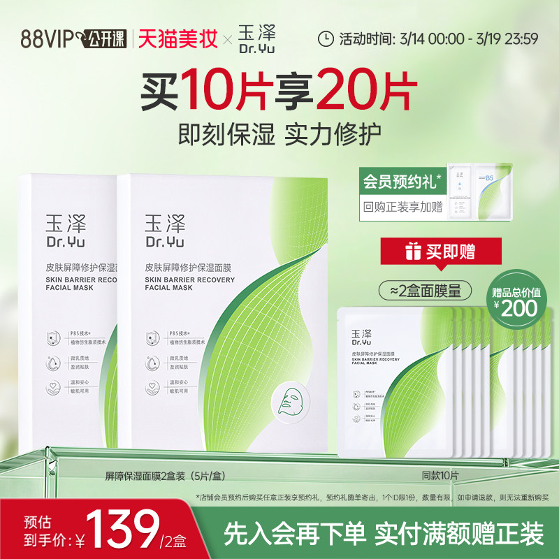 玉泽屏障修护保湿面膜敏感肌皮肤补水舒缓干燥泛红维稳贴片