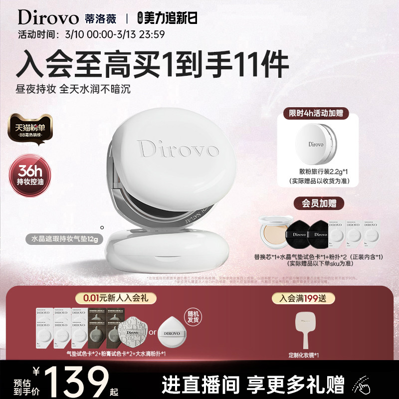 蒂洛薇dirovo白水晶气垫BB遮瑕粉底液控油持妆36h保湿不卡粉提亮
