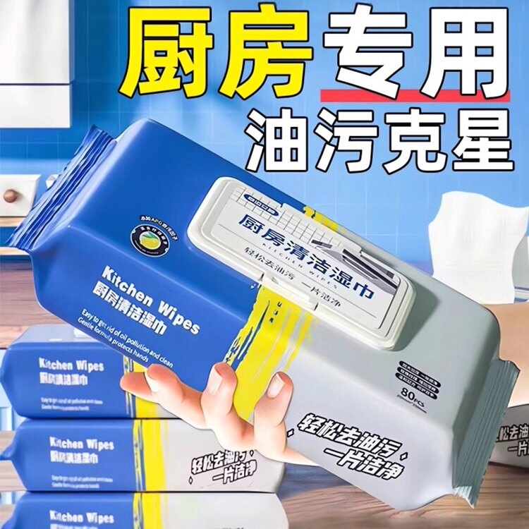 厨房湿巾80片吸油去污家用抽取式带盖厨房清洁加大加厚