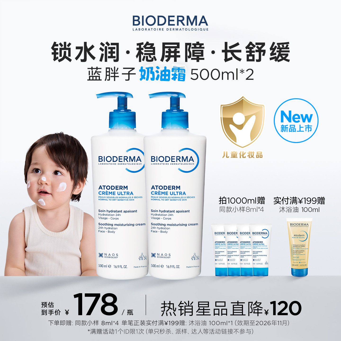 全新贝德玛奶油霜蓝胖子身体乳家庭版儿童宝宝面霜秋冬小金盾温和