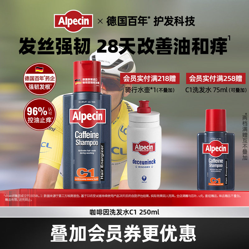 Alpecin欧倍青德国C1咖啡因洗发水蓬松控油男士强韧止痒正品套装