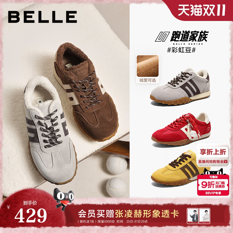 张凌赫/董璇同款百丽彩虹豆红色德训鞋新款棉鞋加绒休闲阿甘鞋预
