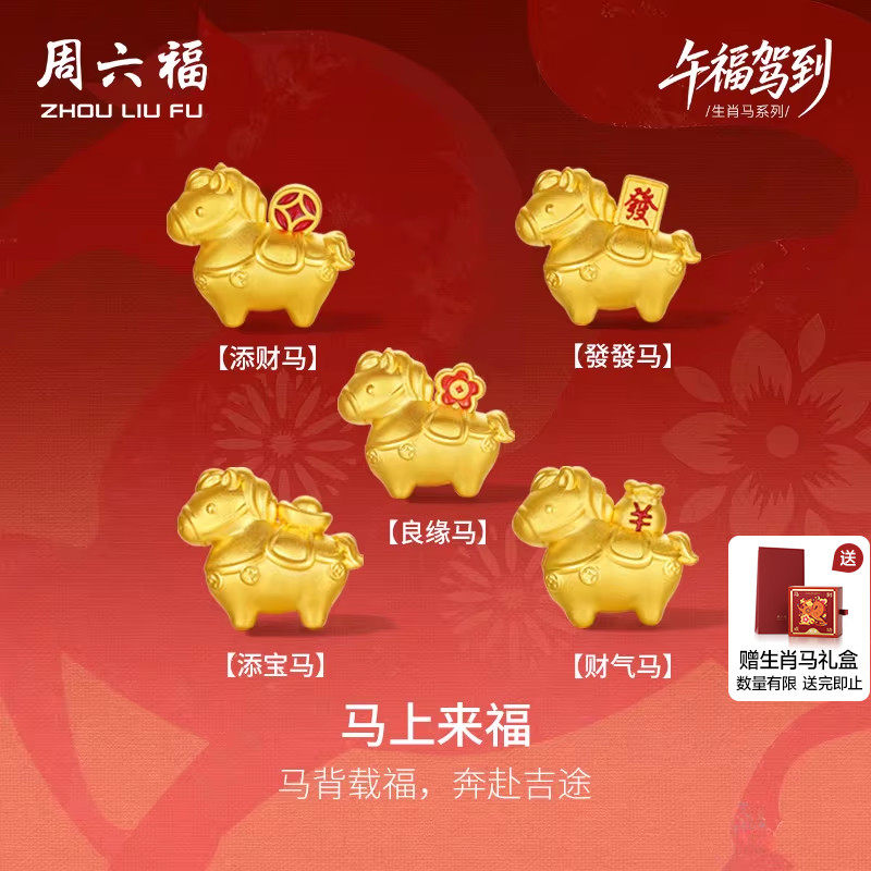 周六福黄金5d硬金手串马上发财生肖马系列定价旗舰店本命年礼物女