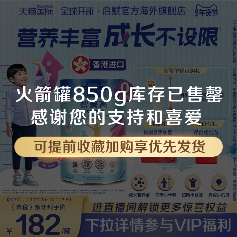惠氏ascenda火箭罐智营高儿童成长奶粉学生0蔗糖850g海外原装进口