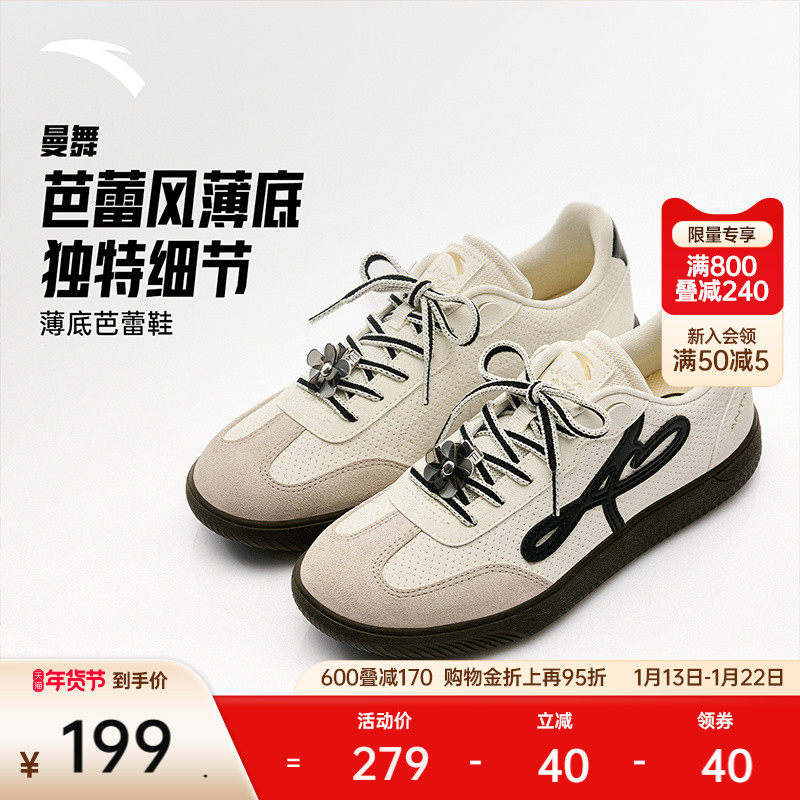 安踏曼舞丨舞蹈鞋芭蕾风经典薄底德训女T头鞋冬季百搭平底休闲鞋