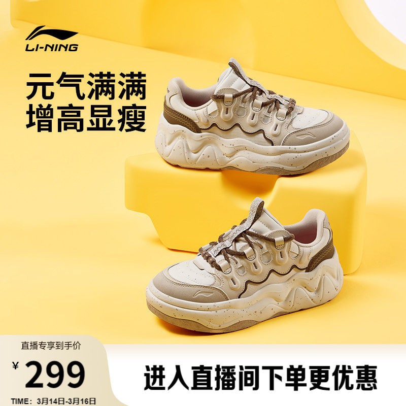 李宁奶酪3面包鞋老爹鞋女鞋增高鞋春季新款厚底显瘦运动鞋休闲鞋