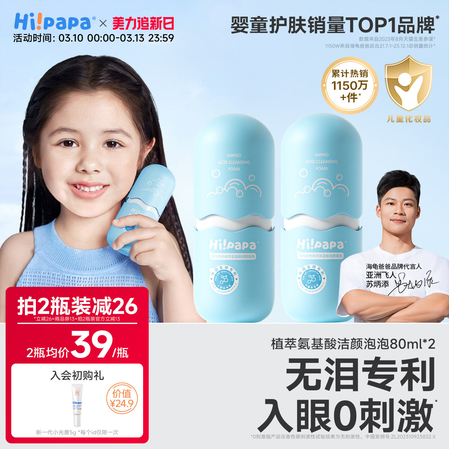 海龟爸爸儿童洗面奶女孩洗脸专用小宝宝氨基酸海泡泡洁面泡沫男童