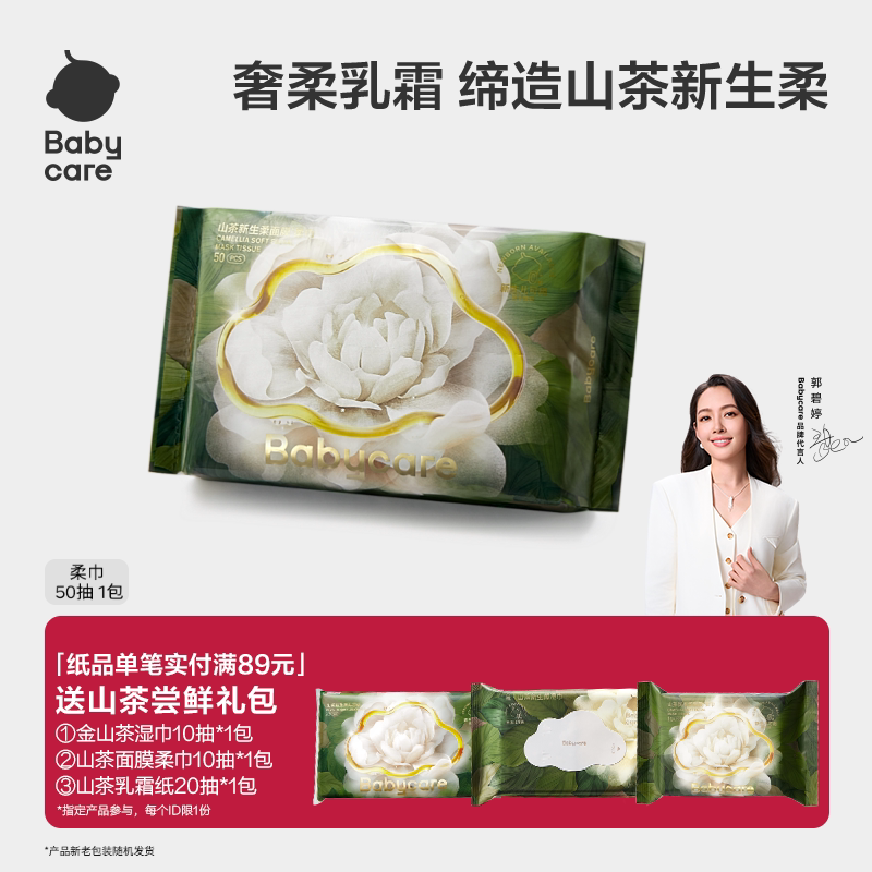 babycare山茶面膜柔巾50抽1包新生干湿两用洗脸巾超柔婴儿专用