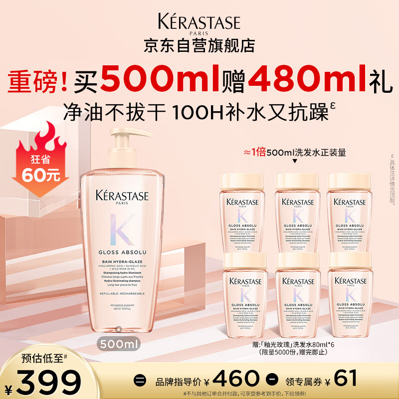 卡诗釉光玫瑰洗发水500ml修护保湿抗毛躁柔顺蓬松无硅油