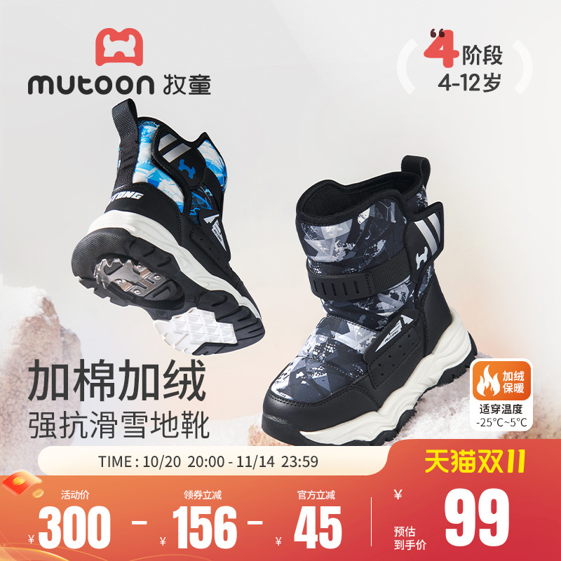 牧童儿童雪地靴男童冬季加绒保暖大棉滑雪鞋女童加厚防滑冰爪棉靴