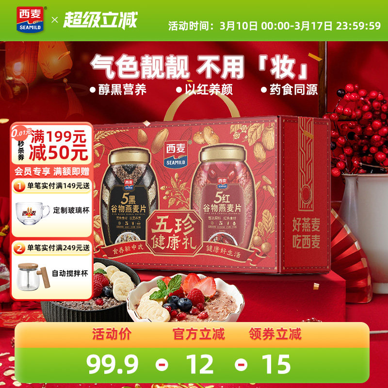 【节日礼盒】西麦五珍健康礼5黑五红燕麦片2罐1700g高蛋白膳食
