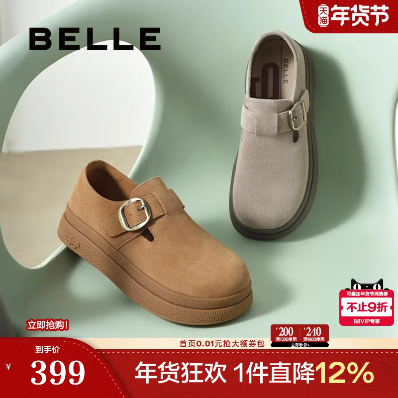 百丽女鞋子复古厚底增高全包勃肯鞋新款休闲乐福鞋D4V1DAM5