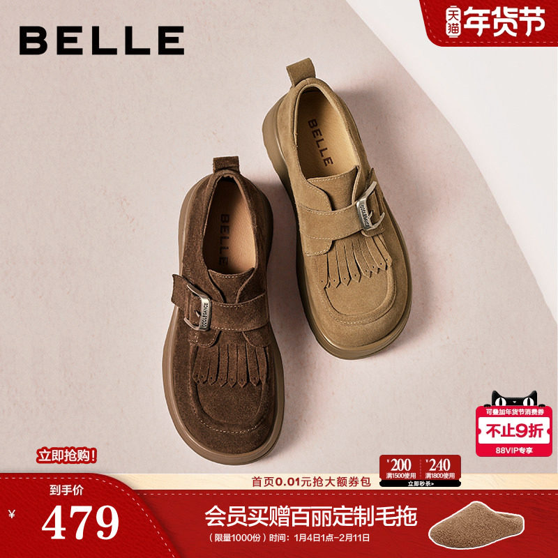 百丽厚底增高复古加绒乐福勃肯棉鞋女商场冬季雪地靴毛毛单鞋子预
